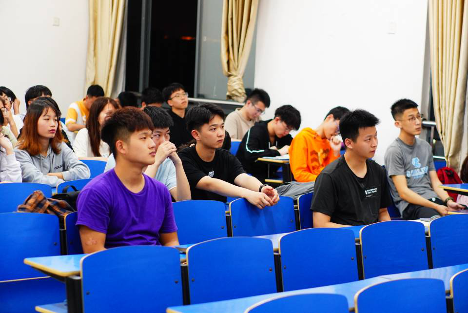 然后张玥学姐强调了考研要抓住数学和专业课,同时可以寻找一个好的研友,彼此加油鼓劲、分享资料,这样互通有无可以节约时间,还要注意劳逸结合,抓住暑假的时间进行巩固与查漏补缺,在选择学校时一定要谨慎。其次肖坤元学长就为什么要考研以及是否跨考等问题做了详细讲解,他认为跨考的前提是热考所跨考的专业,并建议多向学长学姐请教相关问题,加强沟通与交流,他还送给同学们一句话“且让痛苦先行”。