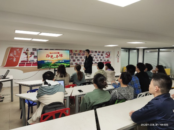 三名党员同志分为围绕中国共产党建党一百周年光辉历史、五四运动中国近代史、南昌起义民族解放奋斗史开展党课学习,重温党的奋斗历程、坚定理想信念。