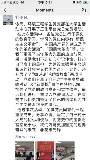 活动结束后,支部党员通过微信、微博等新媒体平台,用文字、视频等形式,讲述自己的所见所感所想,发表自己在三化平台学习的感悟。