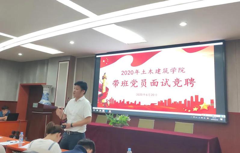 20级带班党员招新面试在土建楼200隆重举行。院党委副书记龙良华,学生党员教育管理中心指导老师万雯怡,赵昕宗老师,刘伟老师,以及19级带班党员,各支部部分党员参加本次活动。