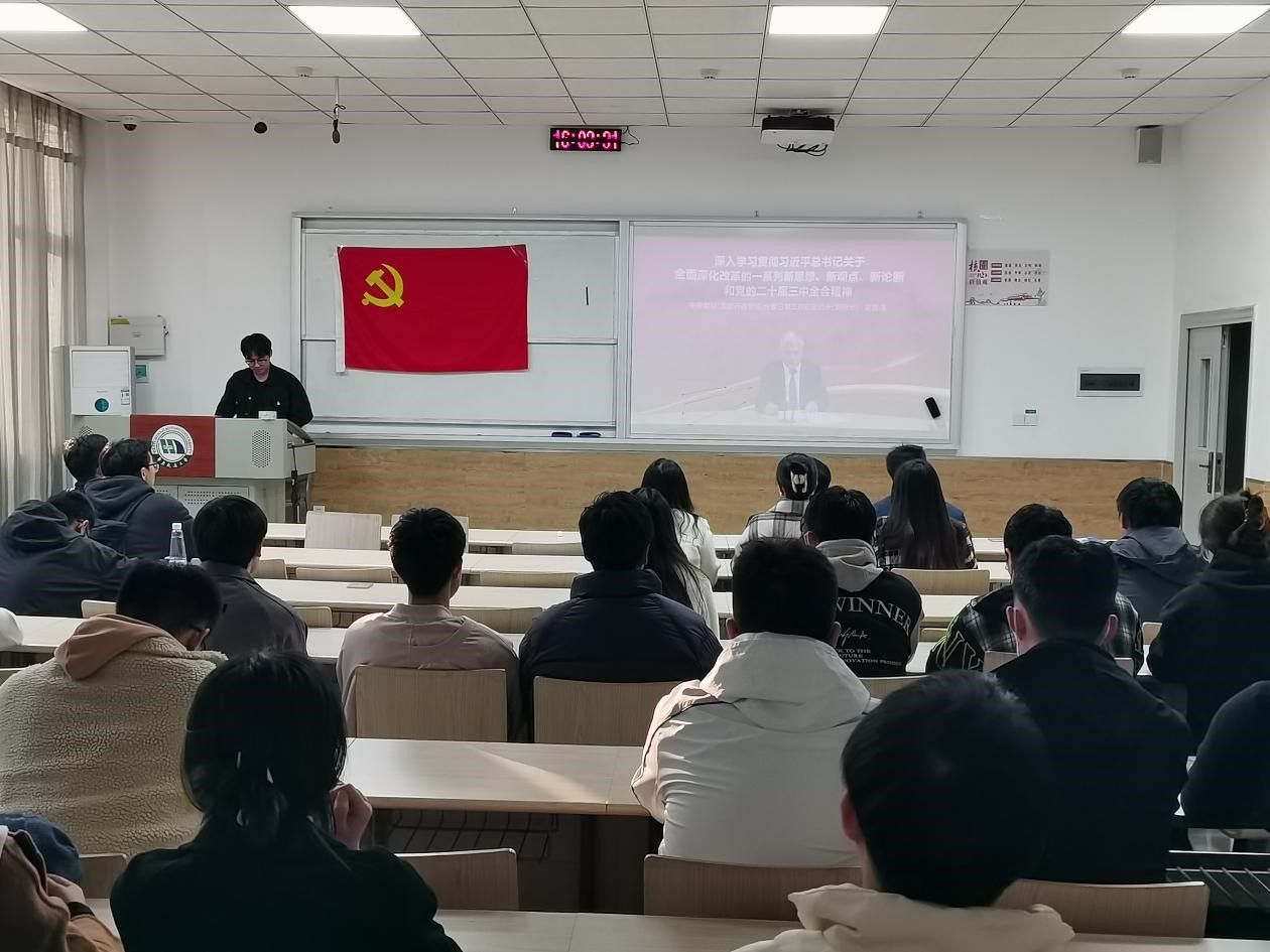 为深入学习贯彻党的二十届三中全会精神,进一步增强全体党员学习贯彻全会精神的自觉性和主动性,12月4日,给排水科学与工程教工党支部、市政环境工程研究生党支部、给排水科学与工程学生党支部与2021级建筑环境与能源应用工程1班于教14栋201教室联合开展主题党日活动。市政环境工程研究生党支部书记王博文同志主持会议,院党委委员、副院长张季老师参加会议。