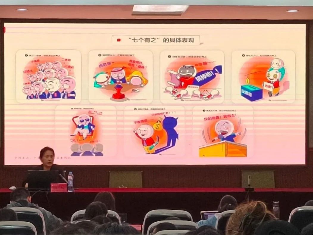 新形势下,党面临着“四大考验”和“四种危险”,张静带领学员们深入学习了“七个有之”的具体表现,使大家充分认识到:全面从严治党,核心是加强党的领导,基础在全面,关键在严,要害在治。