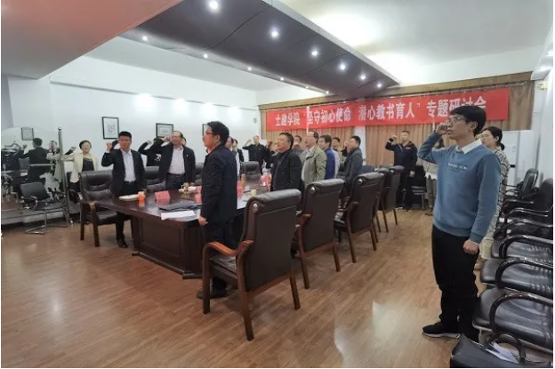 研讨会结束前,陈水生带领全体教师进行宣誓。