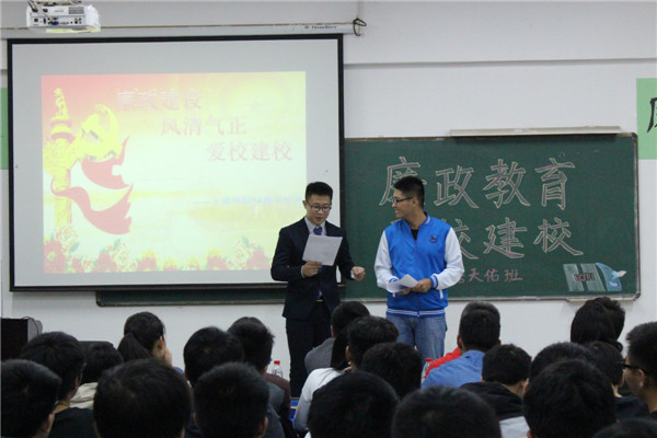 据悉,此次班会以党的十八届六中全会为背景,从大学生廉政教育入手,领会并落实全会精神。此次班会对于强化大学生廉政思想,提升思想素质,弘扬天佑精神具有积极意义。