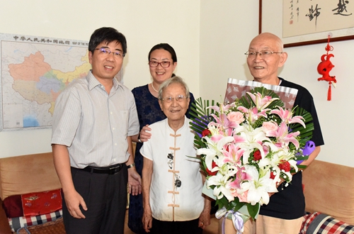 李爱群教授看望老教授,叙旧情,话感恩。(摄影/薛桂君)