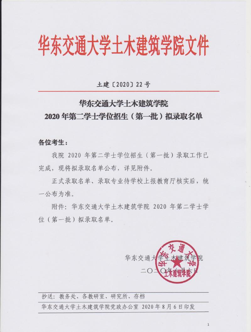 华东交通大学国产视频 2020年第二学士学位招生(第一批)拟录取名单