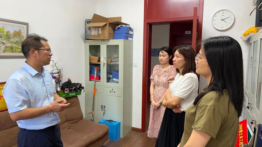走进辅导员办公室,刘永胜与辅导员们亲切交谈,细致了解日常工作开展情况,表达了学院对辅导员们的关心关爱,调研了当前学生工作重点难点问题,并详细询问了近期各班级的学生动态及家长沟通情况,还就暑假期间的安全教育和离校安排给予了具体指导。刘永胜肯定了学院学工队伍的凝聚力、建设力,鼓励辅导员们再接再厉,不断加强学习交流与总结研究,在工作中努力做到前瞻性思考、全局性谋划、整体性推进,提高工作效率和质量。