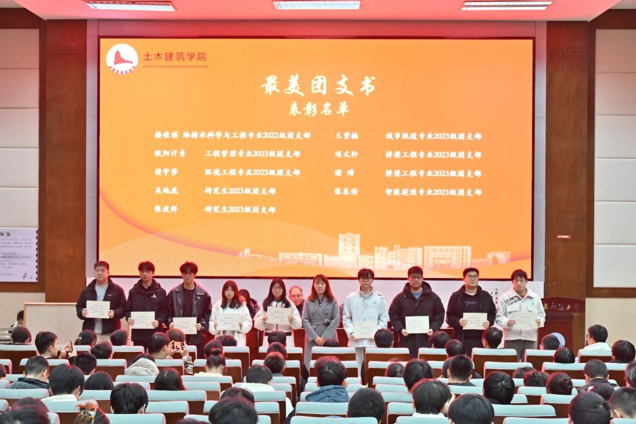 为总结成绩,表彰先进,更好地发挥优秀学生骨干的模范带头作用,推进学院学团工作再创佳绩,并带动优良学风的形成,12月12日晚,土建学院于南区图书馆202召开2024年度“砼心圆”优秀学生骨干表彰大会暨学风建设表彰大会。土建学院党委副书记郑轶,学工办主任兼团委书记万雯怡,学工办副主任兼团委副书记华罗娟、贺慧文,兼职团委副书记严安迪,融媒体中心负责老师黄伟豪出席会议。大会由张富乐、王嘉昱同学主持,土建学院团委、学生会全体成员以及受表彰同学与会。