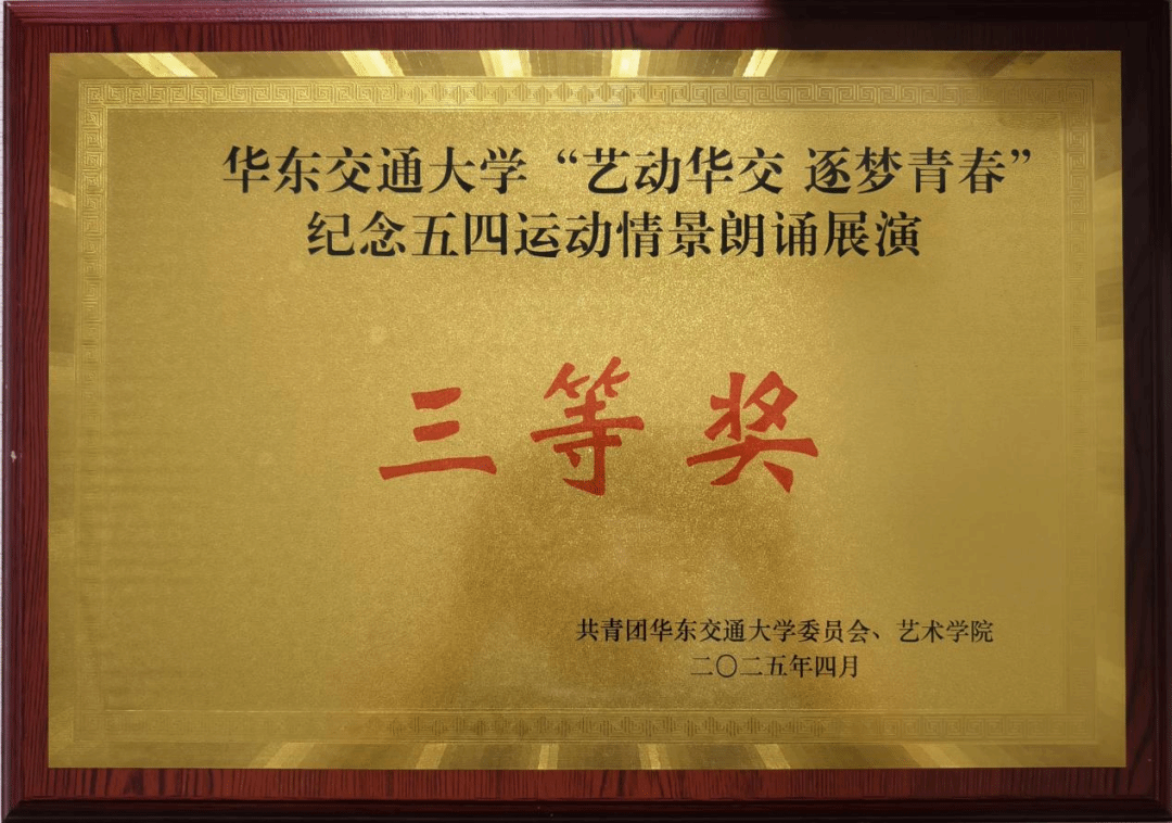 ●在华东交通大学“艺动华交 逐梦青春”纪念五四运动情景朗诵展演活动中荣获三等奖。