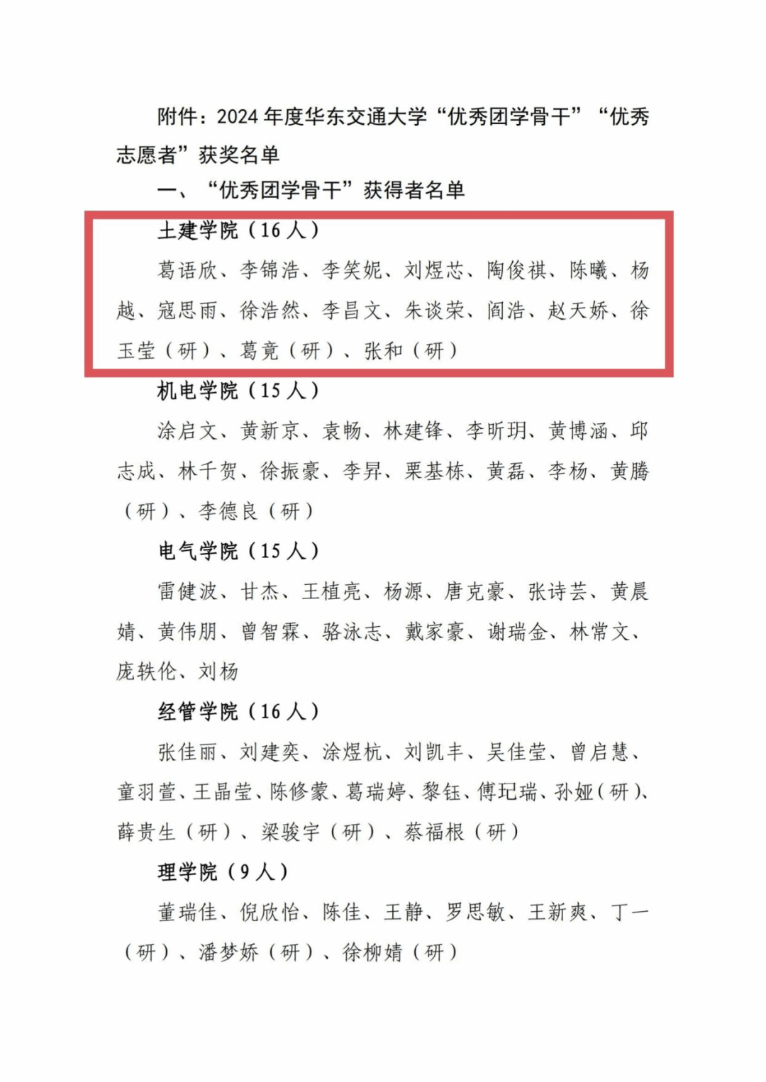 ●葛语欣等16人获评2024年度“优秀团学骨干”,程睿杰等7人获评2024年度“优秀志愿者”。