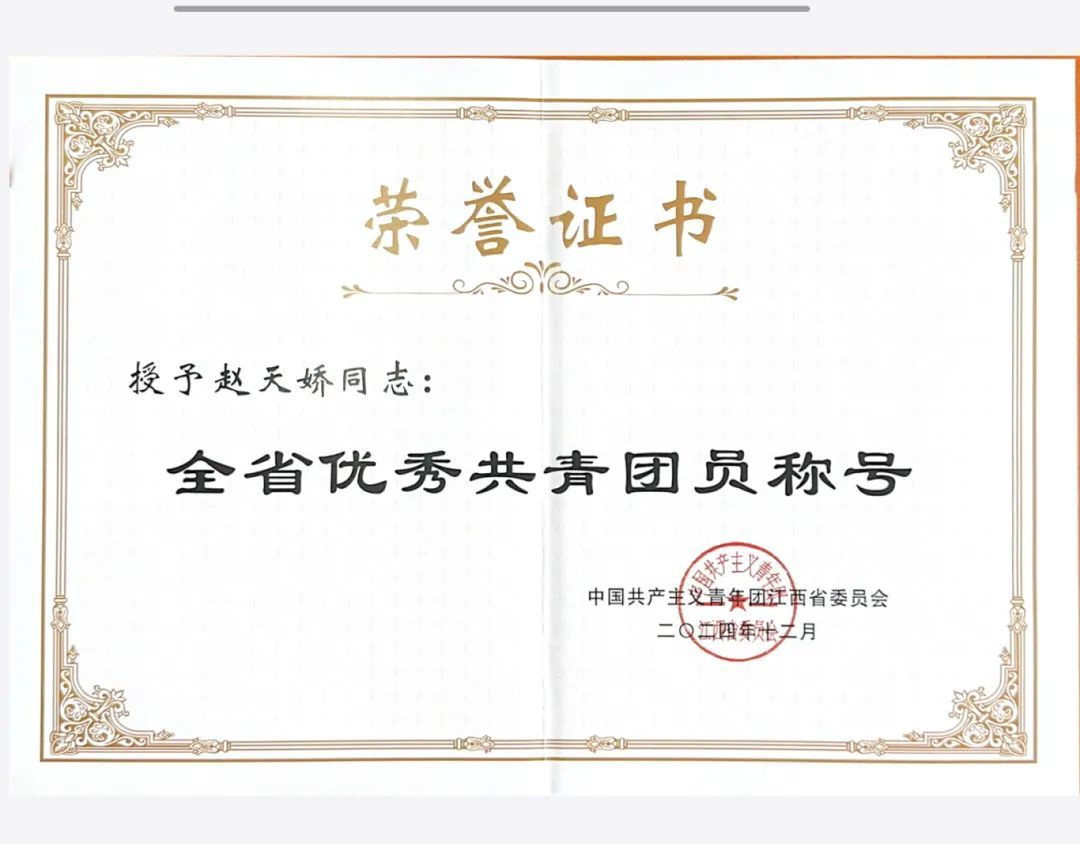 ●万雯怡老师获评“全省优秀共青团干部”,赵天娇同学获评“全省优秀共青团员”。
