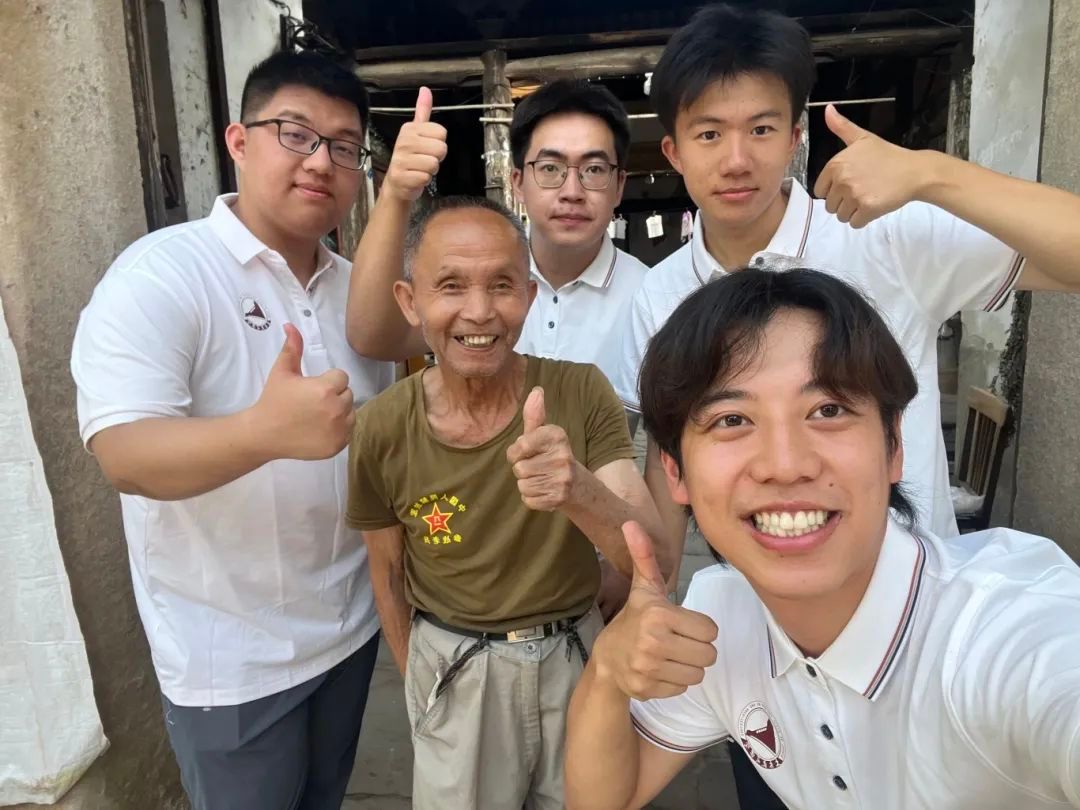 追寻红色足迹,实践队深入湖坊镇、日峰镇、潭溪乡等革命旧址研学。在湖坊镇弹痕累累的墙垣前,队员们偶遇一位对越自卫反击战老兵,老人与青年并肩合影,深情讲述那段烽火岁月。“老一辈用热血和牺牲打下了江山,我们这一代,就要用知识和汗水去建设它、守护它!”队员张百银的感悟引发共鸣。这堂“行走的思政课”,将红色基因化作服务乡村的坚定信念。