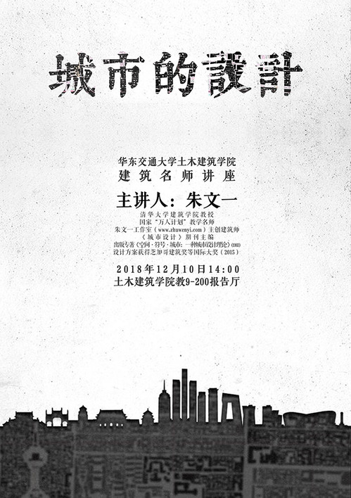 讲座由院长助理、建筑学学科专业负责人李晨教授主持,朱文一教授结合其工作室近些年参加的国际、国内著名设计竞赛作品就公共空间、道路交通、健康城市、英国脱欧、全球变暖、太空殖民、虚拟空间7个重要议题进行了趣味讲解;就数字时代建筑学的若干重要问题进行了阐述,提出了万能视角建筑学、掌上场所营造等概念,并通过其工作室完成的芝加哥建筑奖获奖作品展示了从万能视角、鸟瞰视角到凡人视角全过程建筑体验及其设计。