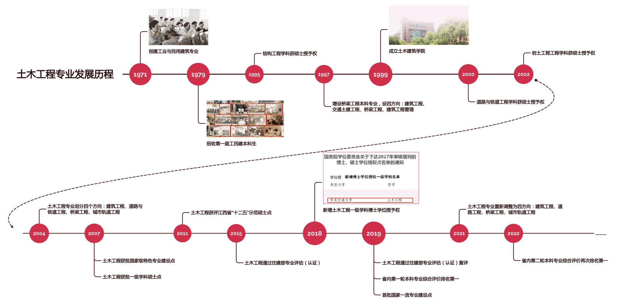 本专业为国家级一流专业建设点、国家级特色专业,先后通过住建部专业评估(认证)初评、复评。入选江西省一流学科,拥有省内土木工程首个一级学科硕士点、唯一的一级学科博士点。全国土木工程专业排名第29位,专业星级5★。连续两届江西省本科专业综合评价土木工程组第一名。专业下设建筑工程、桥梁工程、城市轨道工程和道路工程4个方向,并开设茅以升班、詹天佑班等特色班级。
