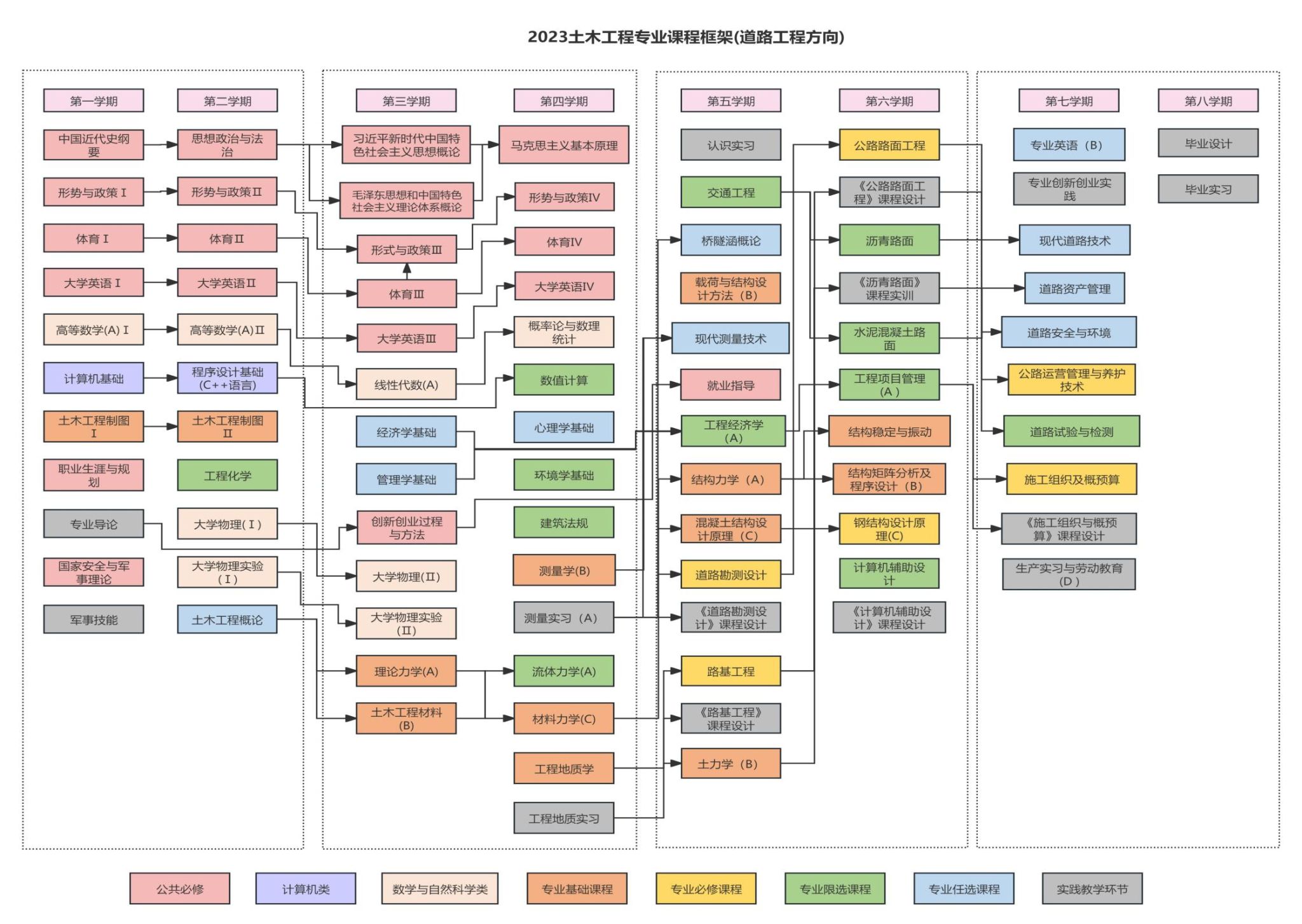 道路工程专业方向主要服务于道路工程的设计、施工与管理,为此设置了“路基工程”、“公路路面工程”、“公路运营管理与养护技术”、“道路勘测设计”、“沥青路面”等特色专业平台课,并在课程大纲中将本方向有关特色内容融入到相应课程或实践环节中。