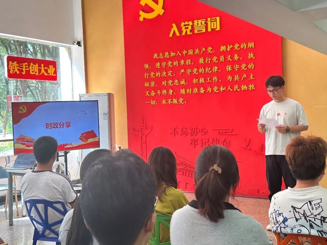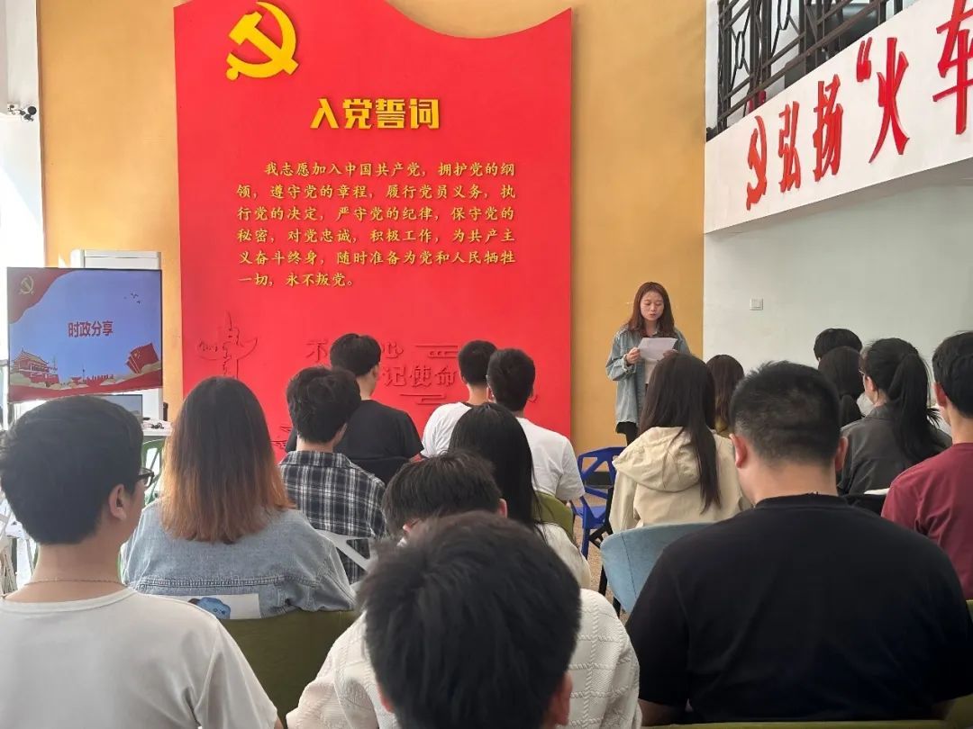 市政环境研究生党支部党员在支部副书记刘曦同志的带领下重温入党誓词。短短十二句入党誓词,字字千钧,让全体党员同志再一次重温了入党时的庄严承诺和坚定决心,进一步坚定了理想信念和职责使命。