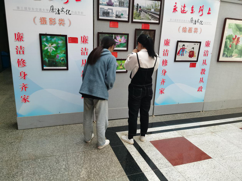 2020年11月13日早晨八点,环境工程学生党支部书记刘伟带领环境工程党支部的全体学生党员参观了《永远在路上》第三届华东交通大学廉洁文化作品鉴赏展览。其共展出作品40件,涵盖书法、绘画、摄影和设计四个类别,全部由各基层党组织报送,学校广大师生创作。