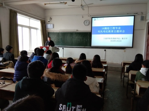 为帮助18级测绘工程专业的新生更好地迎接即将到来的期末考,2019年1月2日,土建学院党委副书记蔡卫平在6栋410为18级测绘工程专业的同学召开了一次考风考纪教育主题班会。