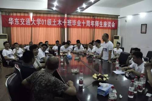 01级土木十班校友返校举行行毕业十周年聚会,并于9栋会议室进行座谈会。校友总会秘书长尹建成,校对外联络处处长、校友工作办公室主任罗侃,国产视频