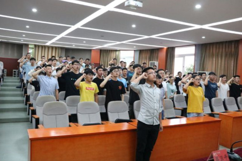 最后党员教育管理中心主任朱金贤带领中心全体成员宣誓。