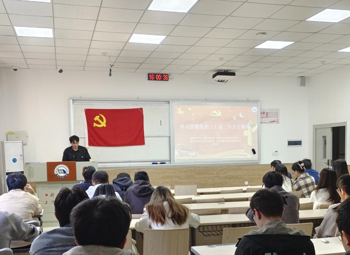 为深入学习贯彻党的二十届三中全会精神,进一步增强全体党员学习贯彻全会精神的自觉性和主动性,12月4日,给排水科学与工程教工党支部、市政环境工程研究生党支部、给排水科学与工程学生党支部与2021级建筑环境与能源应用工程1班于教14栋201教室联合开展主题党日活动。市政环境工程研究生党支部书记王博文同志主持会议,院党委委员、副院长张季老师参加会议。