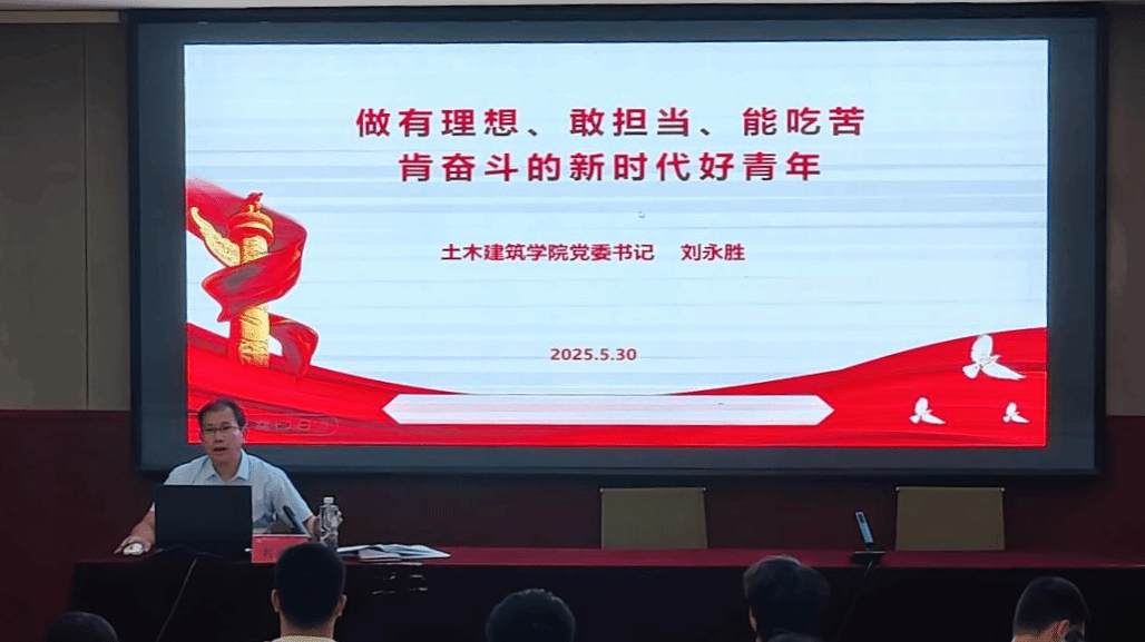 5月30日,国产视频 党委书记刘永胜为土建学院分党校第十期发展对象培训班学员讲授党课——《做有理想、敢担当、能吃苦、肯奋斗的新时代好青年》。
