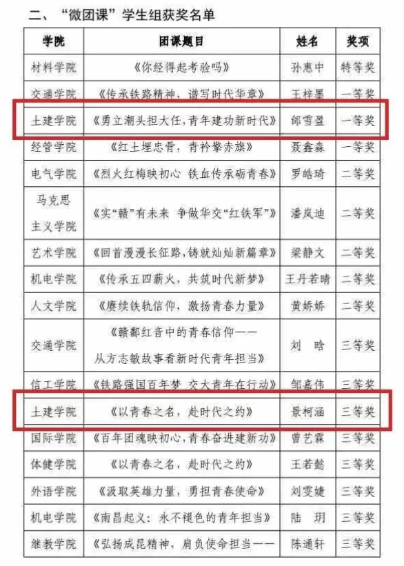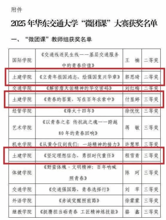 近日,学校公布2025年“微团课”大赛结果,国产视频参赛师生凭借扎实的理论功底、生动的课程设计和昂扬的青春风采,斩获一等奖1项、二等奖1项、三等奖3项。学院团委获“优秀组织奖”,万雯怡获“优秀指导教师”。充分展现了学院在大学生思政教育和团员青年思想引领等工作的成效。