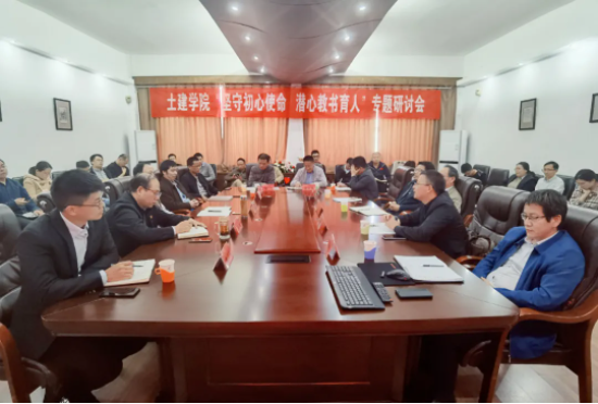 为进一步加强师德师风建设,引导广大教师做有理想信念、有道德情操、有扎实知识、有仁爱之心的“四有老师”,全面加强教工职业道德建设,提高教书育人水平,弘扬尊师重教的社会风尚,10月22日下午,学院在土建楼302会议室召开以“坚守初心使命,潜心教书育人”为主题的师德师风专题研讨会。院党委书记陈水生,党委副书记郑轶,学工办主任兼团委书记闫伟,黄鹢、许开成、王永祥等学院年度优秀教育工作者及优秀教师代表出席本次大会。会议由陈水生主持。