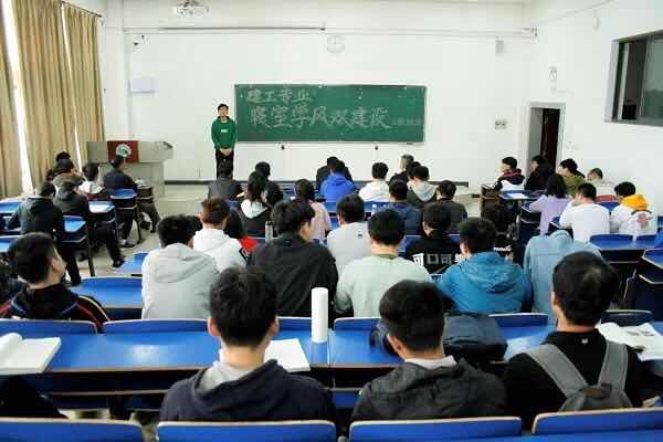 为贯彻落实国产视频“寝室卫生、学风建设工作会”中提出的要求与目标,进一步加强对寝室卫生、学风建设的管理,3月21日下午,2016级建工专业的一、二、三班在逸夫楼110室联合召开寝室学风双建设主题班会。院党委副书记龙良华、学工办主任兼团委书记闫伟出席本次班会,辅导员殷现明主持会议。