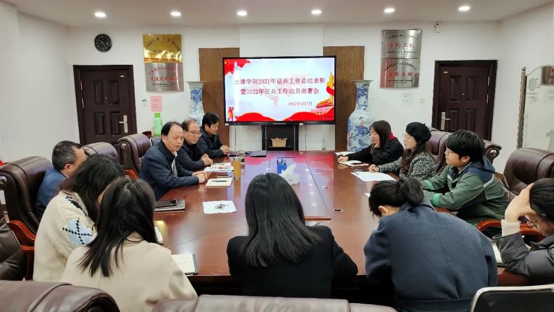2021年征兵工作总结表彰暨2022年征兵工作动员部署会在土建楼302会议室举行。土建学院党委书记陈水生、副书记郑轶、副院长陈莘莘和全体辅导员参加了会议,此次会议由党委副书记郑轶主持。
