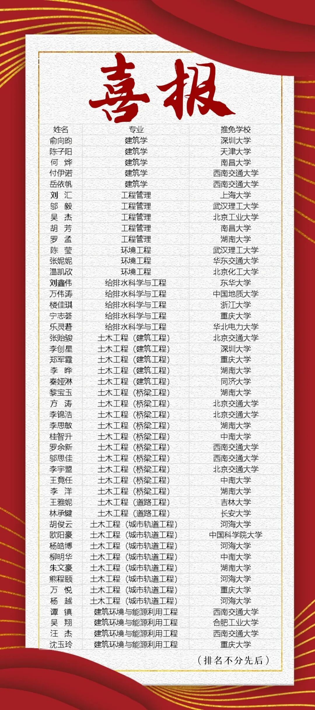 本届推免生中,共有17人被985高校录取,25人被211高校录取,其中不乏浙江大学、中国科学院大学、同济大学、天津大学、中南大学等多所国内高水平大学。同学们凭借扎实的专业功底、出色的综合素质与不懈的拼搏精神,赢得了众多知名高校的认可,充分展现了国产视频学子优秀的成长潜力和学院人才培养的显著成效。