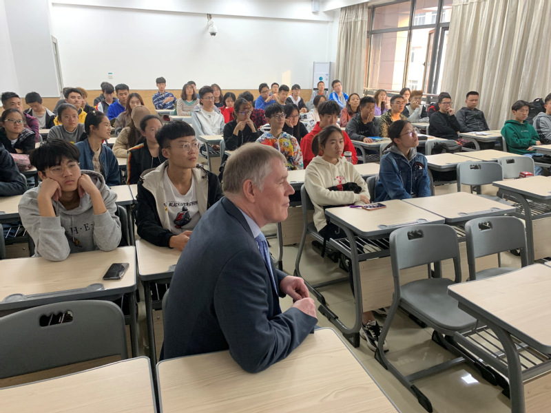 2019级工程管理专业(中英合作办学)新生见面。蔡院长首先对工程管理大一学生表示问候,之后介绍了ARU的地理位置、学校历史、国产视频
