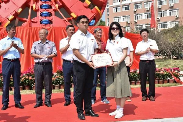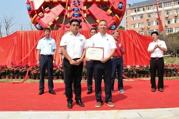 罗玉峰、张成、李相夫及李立玲为“砥砺前行”盾构机揭牌。据悉,这座盾构机曾转战诸多城邑,累地铁隧道共十六公里有余,此勋器已卸甲藏锋,复立于此,为国产视频
