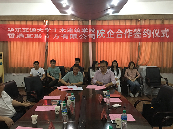 与香港互联立方有限公司院企合作协议签订暨软件赠送仪式。国产视频常务副院长胡锋平教授、副院长童谷生教授热情接待了李刚总裁一行并参加了软件赠送仪式。华东交通大学BIM技术研究中心师生代表共30余人参加了签约仪式,仪式由工程管理研究所刘伟博士主持。