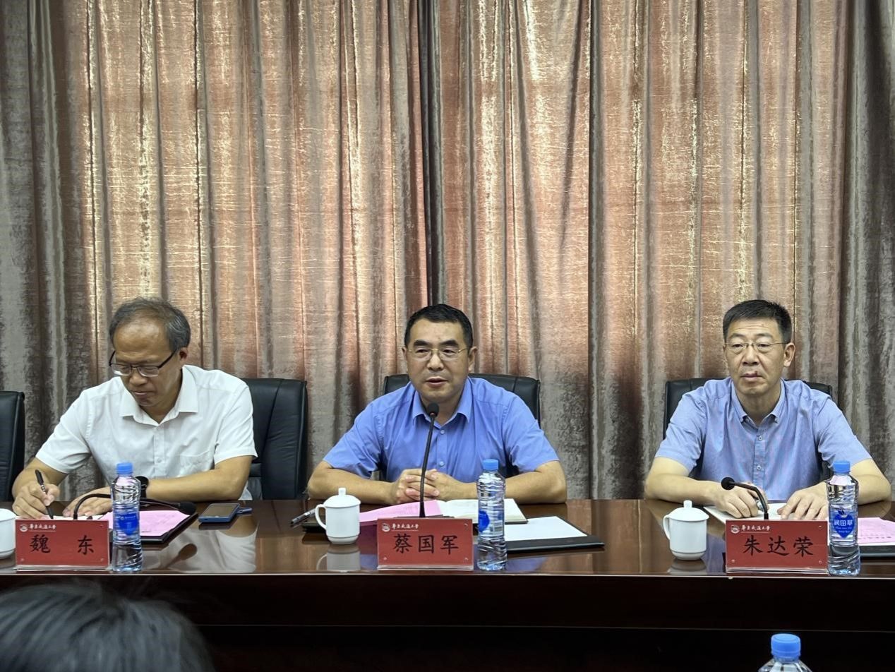 蔡国军对华东交大的热情接待表示衷心感谢。他简要介绍了安徽建大的基本情况和此次调研目的,希望以此次调研为契机,借鉴华东交大在学科建设、研究生培养、专业论证、学生就业等工作中积累的经验和成功做法,进一步加强两校沟通,共同推进两校事业的发展。