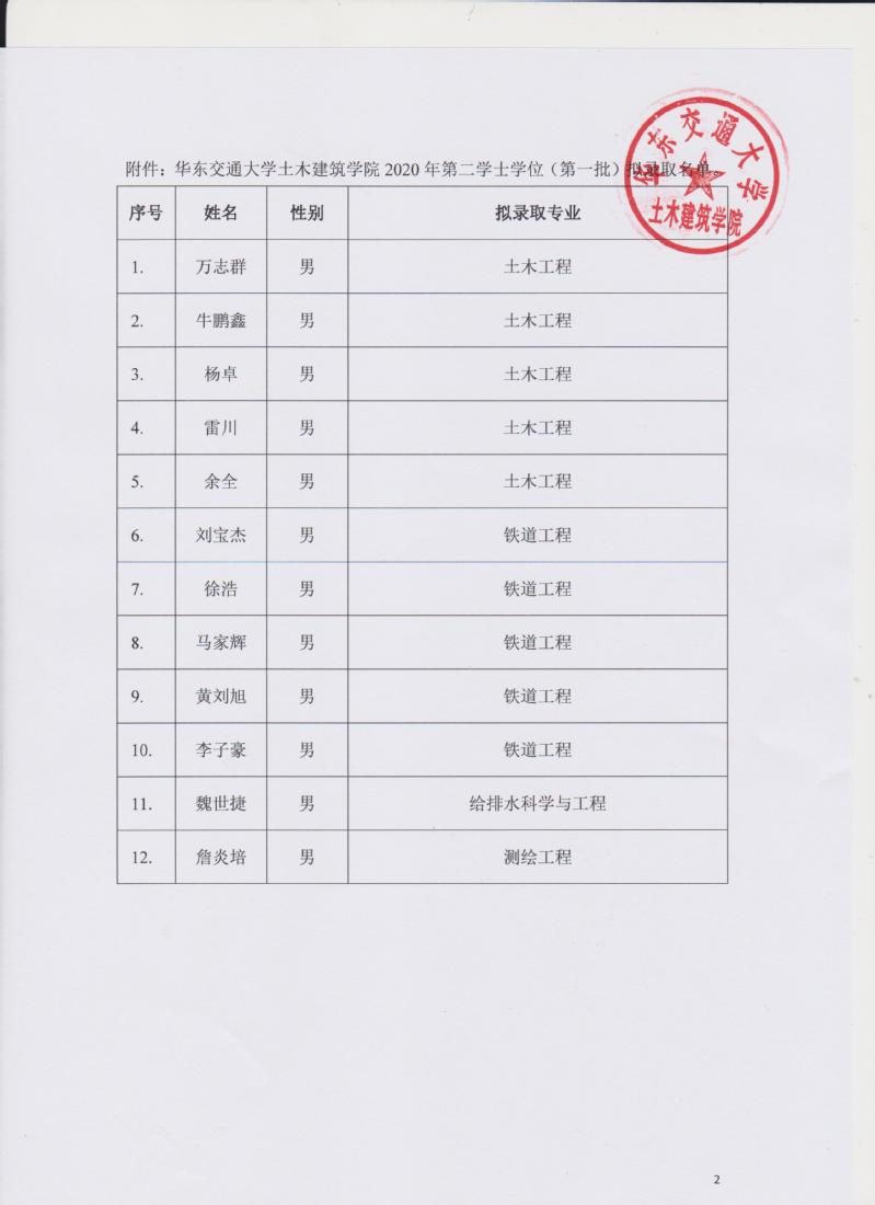 华东交通大学国产视频 2020年第二学士学位招生(第一批)拟录取名单
