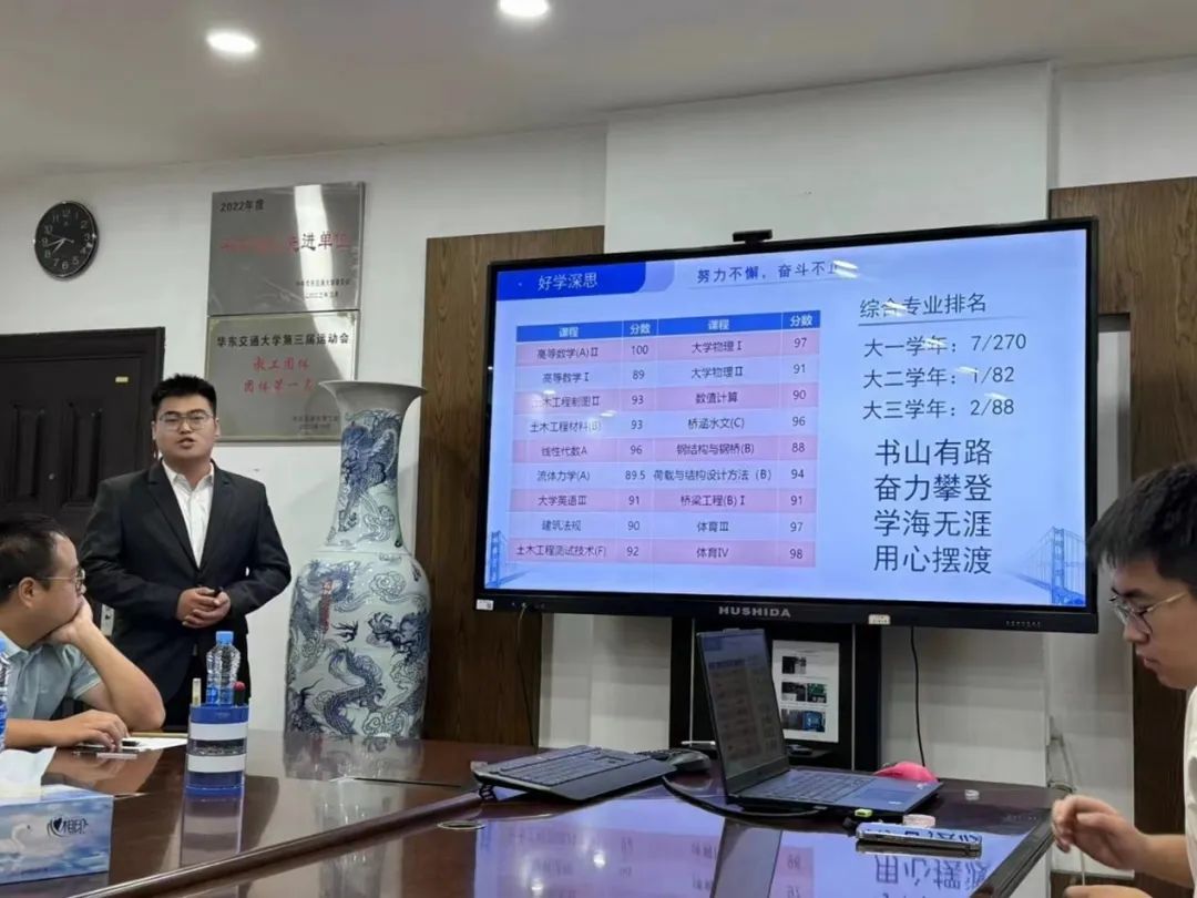 为切实做好2023—2024学年国家奖学金评审工作,进一步推动学院学风建设,激励学生勤奋学习、锐意进取,根据教育厅有关通知精神和《华东交通大学国家奖学金管理实施细则》《关于做好2023-2024学年本专科国家奖助学金评审工作的通知》等相关文件要求,土建学院于9月24日下午四点半在土建楼302会议室举行国家奖学金答辩会。院党委副书记郑轶,学工办主任兼团委书记万雯怡及全体辅导员出席会议。