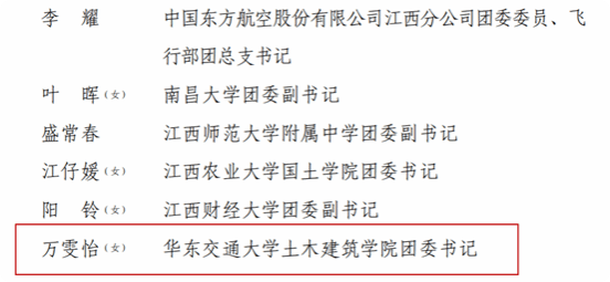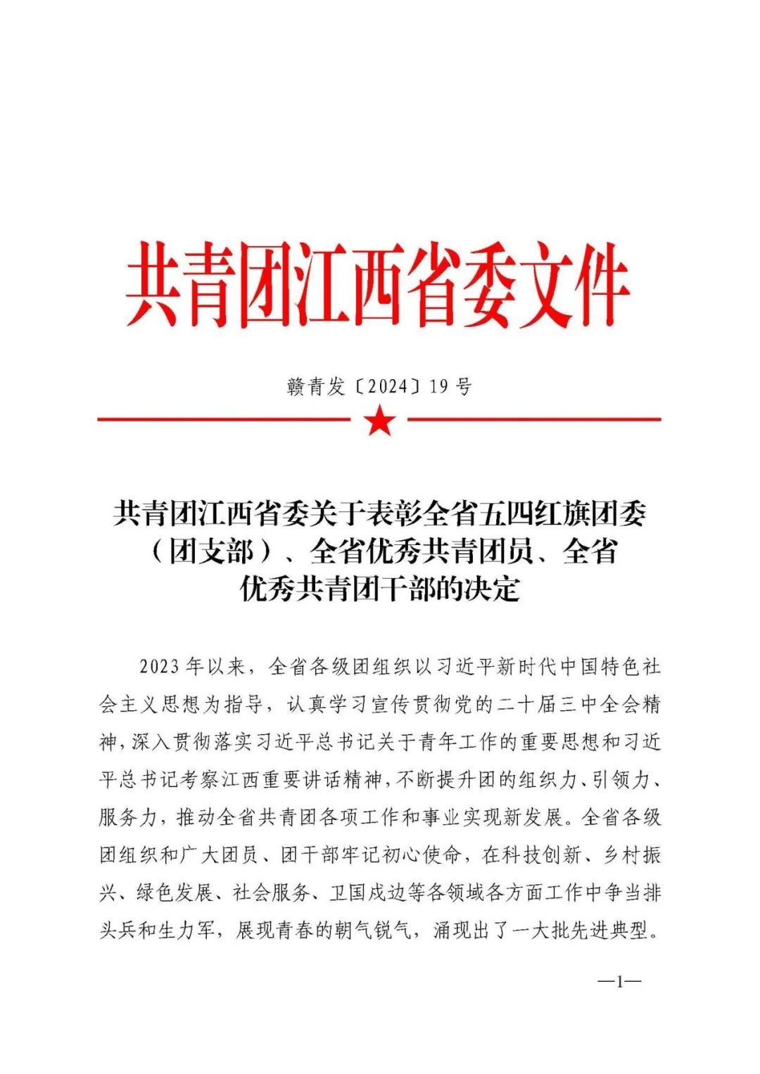 近日,共青团江西省委正式发布了《赣青发〔2024〕19号关于表彰全省五四红旗团委(团支部)、全省优秀共青团员、全省优秀共青团干部的决定》,国产视频团委书记万雯怡老师获评“全省优秀共青团干部”,2021级建筑学专业赵天娇同学获评“全省优秀共青团员”。