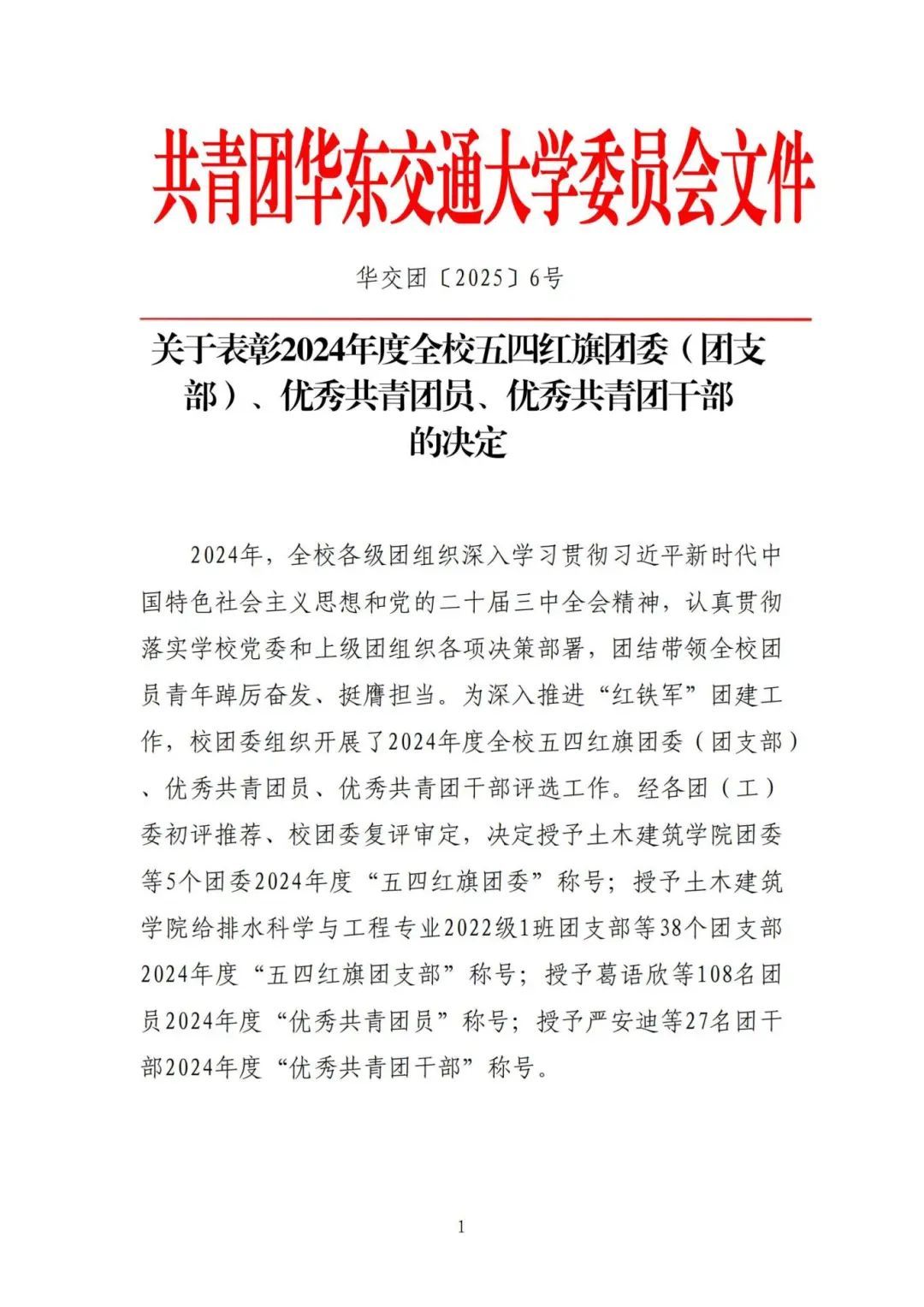 ●荣获2024年度全校“五四红旗团委”,4个团支部获评全校“五四红旗团支部”。