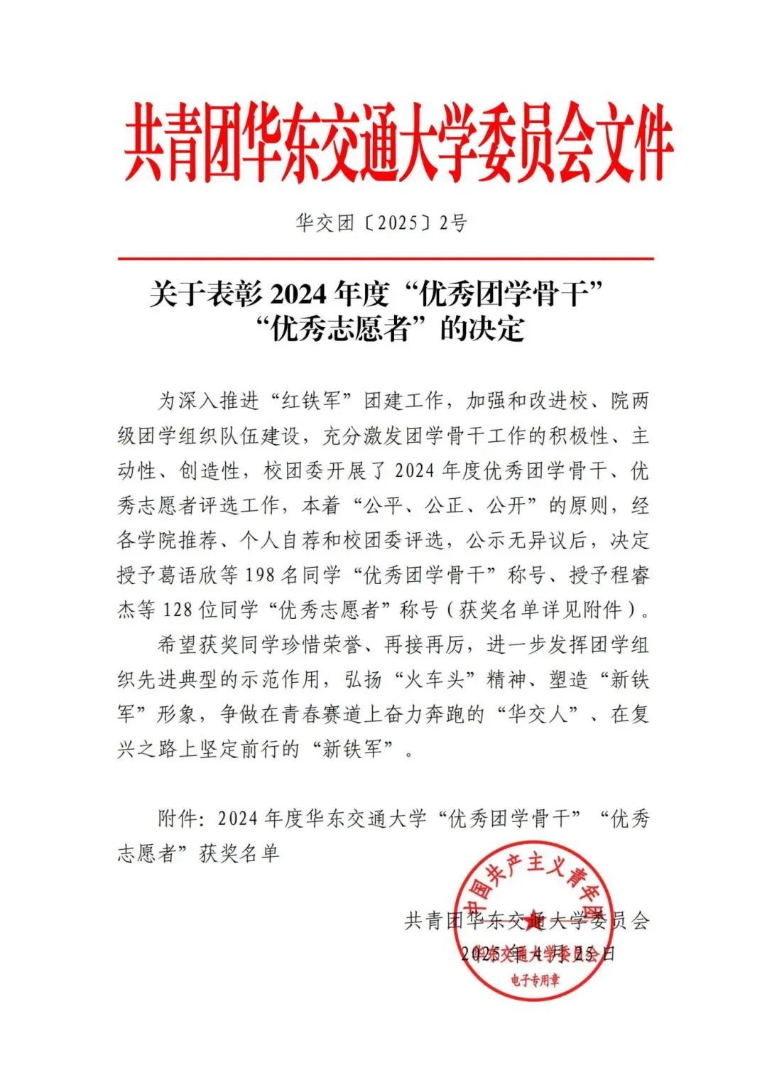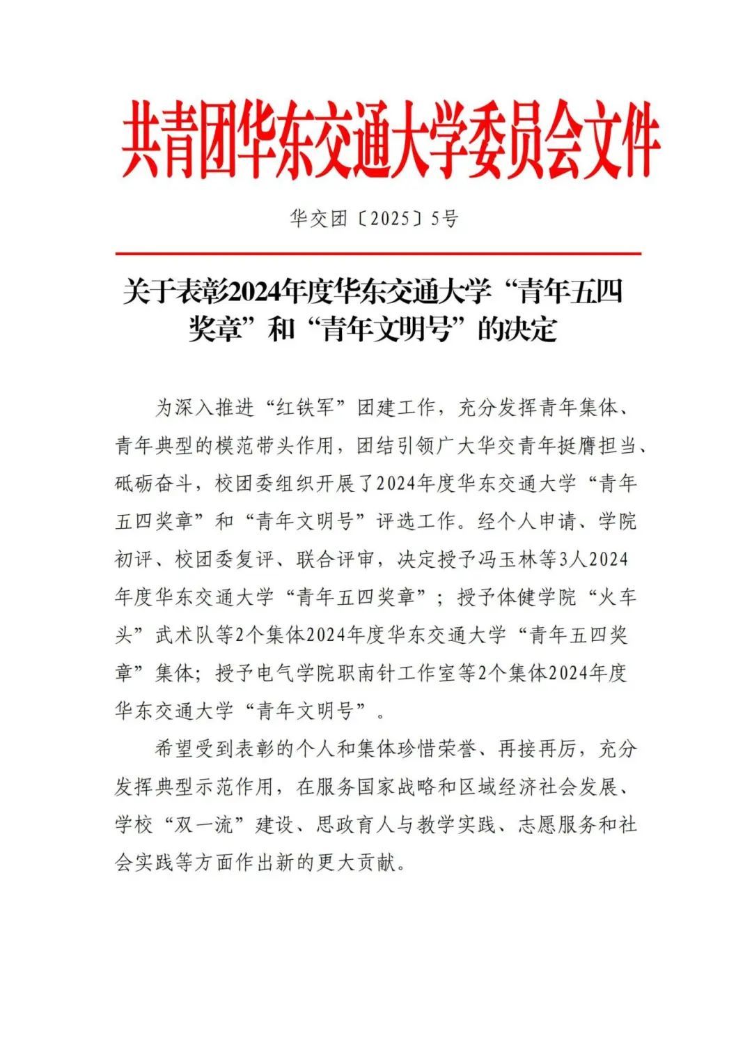 ●冯玉林老师荣获2024年度华东交通大学“青年五四奖章”。