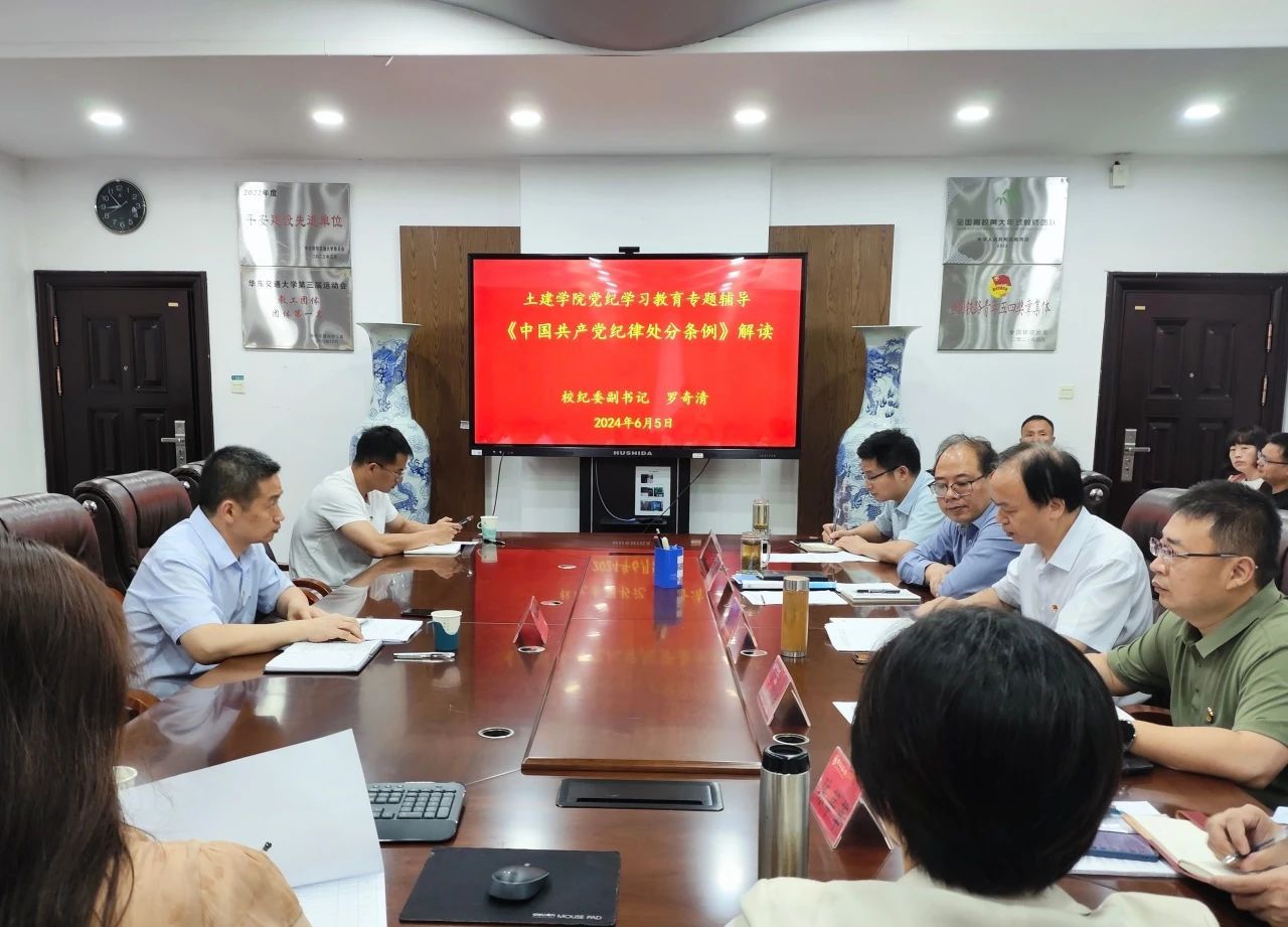 近日,院党委理论学习中心组举行2024年第四次集体学习,集中学习新修订的《中国共产党纪律处分条例》(后简称《条例》)。校纪委副书记罗奇清作专题辅导,院党委委员、院班子成员、党政办副主任、党委组织员、各党支部书记、各系部主任及全体辅导员参加会议,会议由院党委书记、理论学习中心组组长陈水生主持。